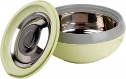 Låget lukkes med en simpel drejning, og det integrerede håndtag gør transport nemmere. Skålen holder varmen i op til 2 timer; for længere effekt forvarm indersiden med varmt vand i 1–2 minutter. Om sommeren kan du også bruge den til kolde desserter og is – for bedre køling, afkøl skålen på forhånd i køleskabet.