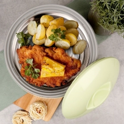 Den indvendige skål i rustfrit stål og den kvalitetsisolering holder din mad varm eller kold i op til 2 timer. Ideel til servering af tilbehør, supper og hovedretter.