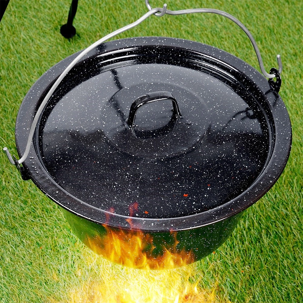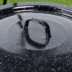 Dette emaljerede låg er et ideelt tilbehør til udendørs madlavning i gryde – fra gullasch til supper. Det passer til ungarske gryder på 9,5 l og bevarer effektivt varme og fugt takket være den hvælvede form, hvilket forkorter tilberedningstiden og forbedrer den endelige smag.