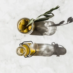 Perfekt til olivenolie og smagsatte olier med urter, hvidløg eller chili. Det klare glas fremhæver ingredienserne flot.