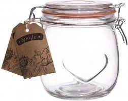 Det stilfulde og praktiske glas med klips er et fremragende valg til daglig opbevaring af mad og tilberedning af hjemmelavede lækkerier. Takket være patentlukning med gummipakning er det helt tæt og beskytter indholdet mod luft og fugt. Det kraftige glas med hjerterelieff ser elegant ud, så det er også velegnet som gaveemballage til hjemmelavede marmelader eller honning.