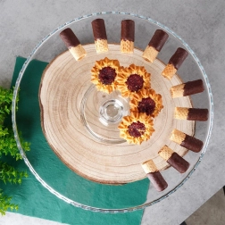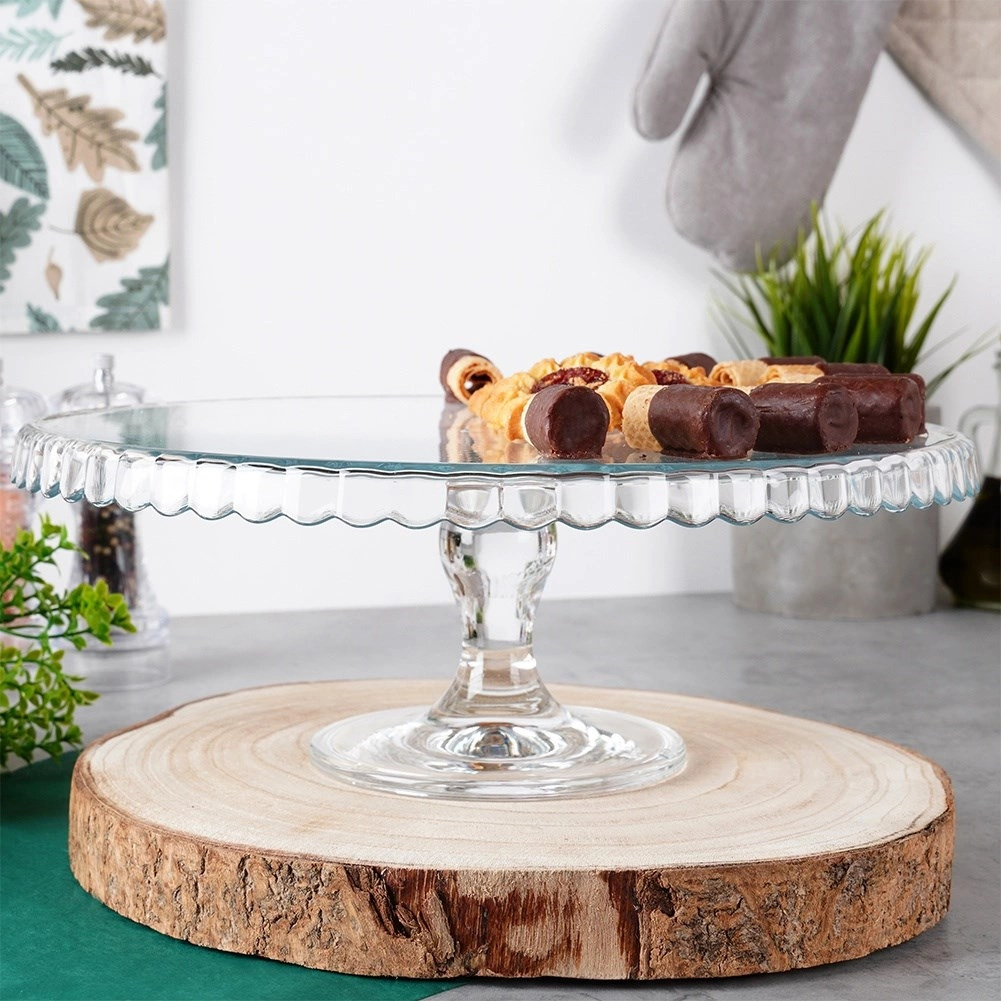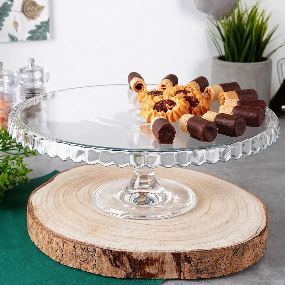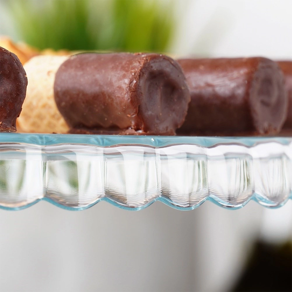 Klart glas og bølget kant understreger udseendet af kager og småkager, som vil stråle på bordet.