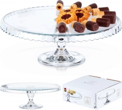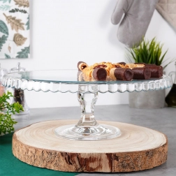 Præsenter kager, tærter, cupcakes eller canapéer med stil. Det transparente glas lader farver og strukturer i dine desserter komme til deres ret, mens den forhøjede piedestalfod sikrer nem udskæring og servering. Den bølgede kant giver et dekorativt præg til ethvert bord.