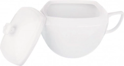 Denne porcelænssuppeskål med låg kombinerer klassisk design og praktisk anvendelse. Den store kapacitet på 3,5 l gør det nemt at servere supper, gullasch, karry eller andre one-pot-retter til flere gæster. Den hvide glasur passer til enhver bordopdækning og tager sig flot ud på et festligt dækket bord.