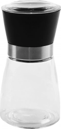Universel glaskværn til salt, peber og andet krydderi med en højde på 13 cm og en diameter på 6,5 cm. Tilbyder manuel kværning, keramisk kværnemekanisme til hårde korn, justerbar grovhed via drejeknap og låg mod spild af rester. Elegant, robust og let at rengøre – ideel til køkkenet og professionelle køkkener.