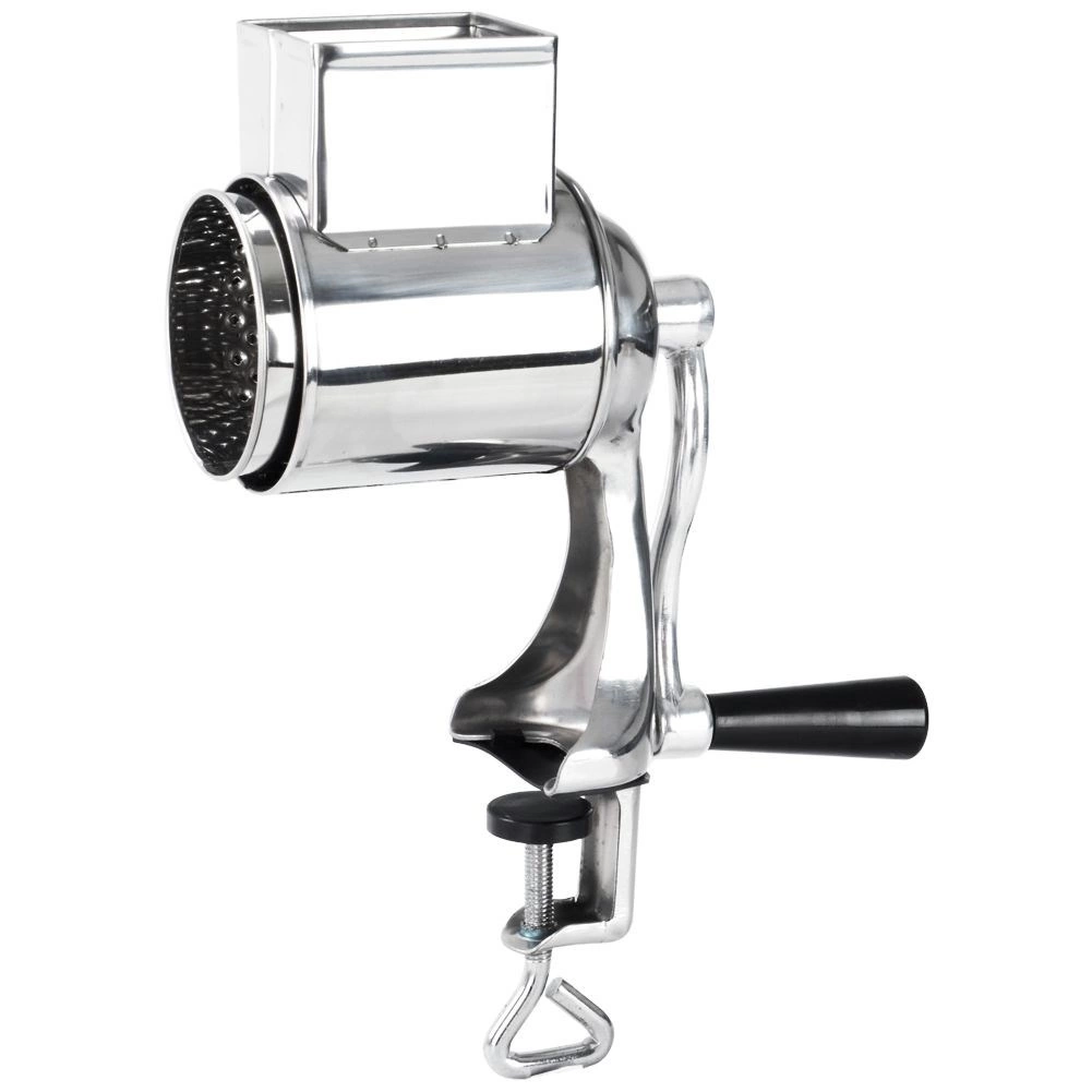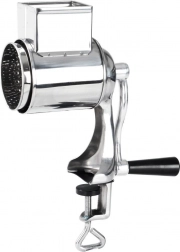 Det praktiske manuelle roterende rivejern med skrue-klemme til bordpladen (maks. tykkelse ca. 3,5 cm) giver fremragende stabilitet under arbejdet. Krop i rustfrit stål kombineret med holdbar plast og et behageligt håndsving muliggør jævn rivning uden stor kraft. Beholderen på ca. 6 × 5 cm rummer nemt råvarer for jævn dosering.