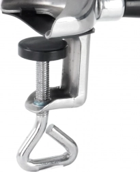 Den robuste C-klemme med beskyttende puder fastgør rivejernet sikkert til bordpladen (max. 3,5 cm) og beskytter overfladen mod skader.
