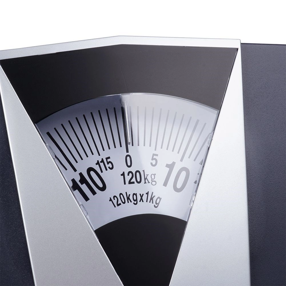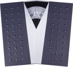 Oplev enkel og præcis vejning uden batterier. Denne mekaniske vægt har en klassisk analog mekanisme med en overskuelig skala i 1 kg-trin og en stabil viser. Den skridsikre struktur på trædefladen sikrer et sikkert og behageligt ståsted, også for ældre.