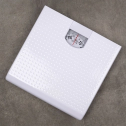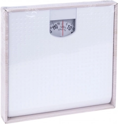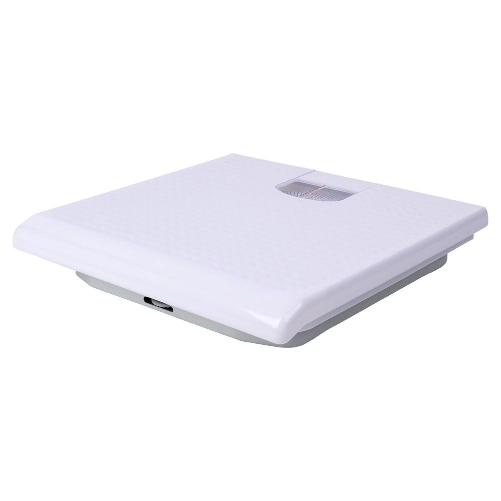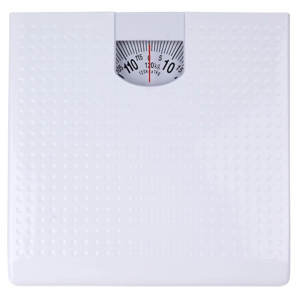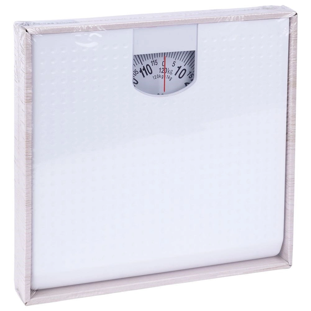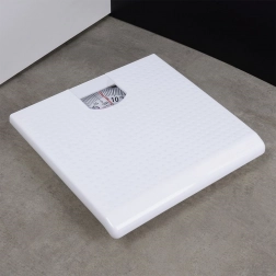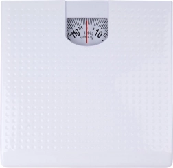 Mekanisk badevægt med robust plastikchassis og lav profil – ideel til hjemmet. Takket være den overskuelige skala i kilogram op til 120 kg kan du hurtigt se din vægt uden ventetid og uden batterier. Det rene hvide design passer til både moderne og klassiske badeværelser.