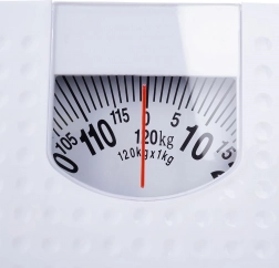 Enkel og pålidelig mekanisk personvægt i hvid til daglig kontrol af vægten. Tilbyder maksimal bæreevne på 120 kg, letlæselig analog skive med inddeling på 1 kg og skridsikker overflade for sikker ståposition. Virker uden batterier – mekanisk drift sparer både besvær og omkostninger.