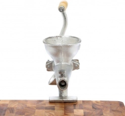 Justerbar presningsgrad gør det muligt at få enten en tyk puré eller en finere juice med mindre pulp. Inkluderer stof til ekstra filtrering, som hjælper med at opnå et endnu klarere resultat uden små partikler. Nem montering, enkel rengøring og lang levetid takket være kvalitetsstøbejern og træhåndtag.