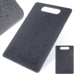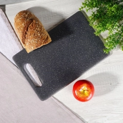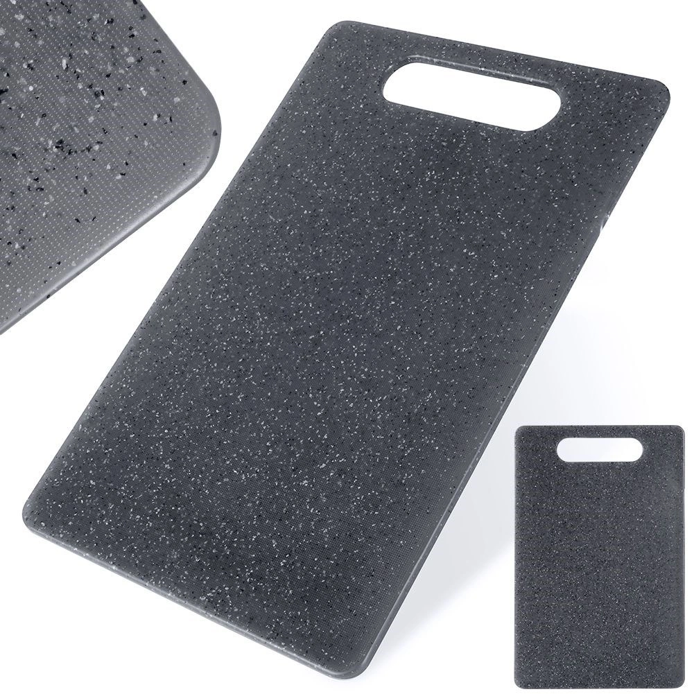 Gråt skærebræt af robust plast med granitlook er et glimrende valg til ethvert køkken. De kompakte mål 24 × 15 cm sparer plads, men giver stadig en komfortabel arbejdsflade til at skære brød, frugt, grøntsager og kød. Materialet er skånsomt mod blade og egner sig til alle knive, inklusive keramiske.