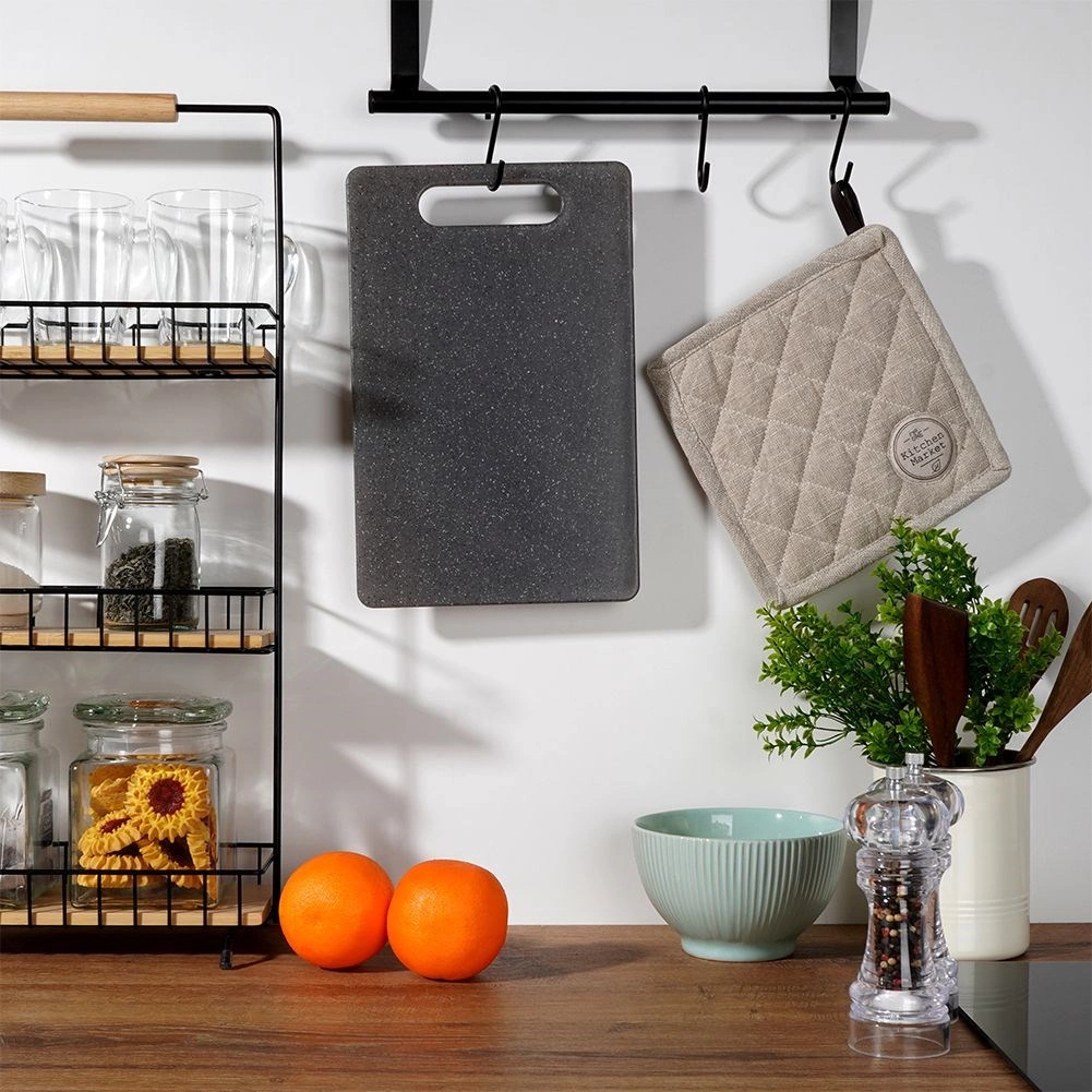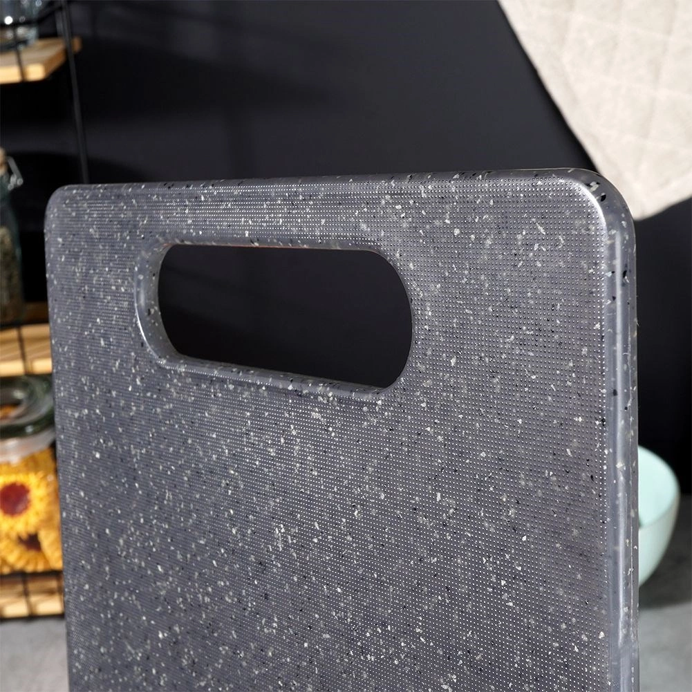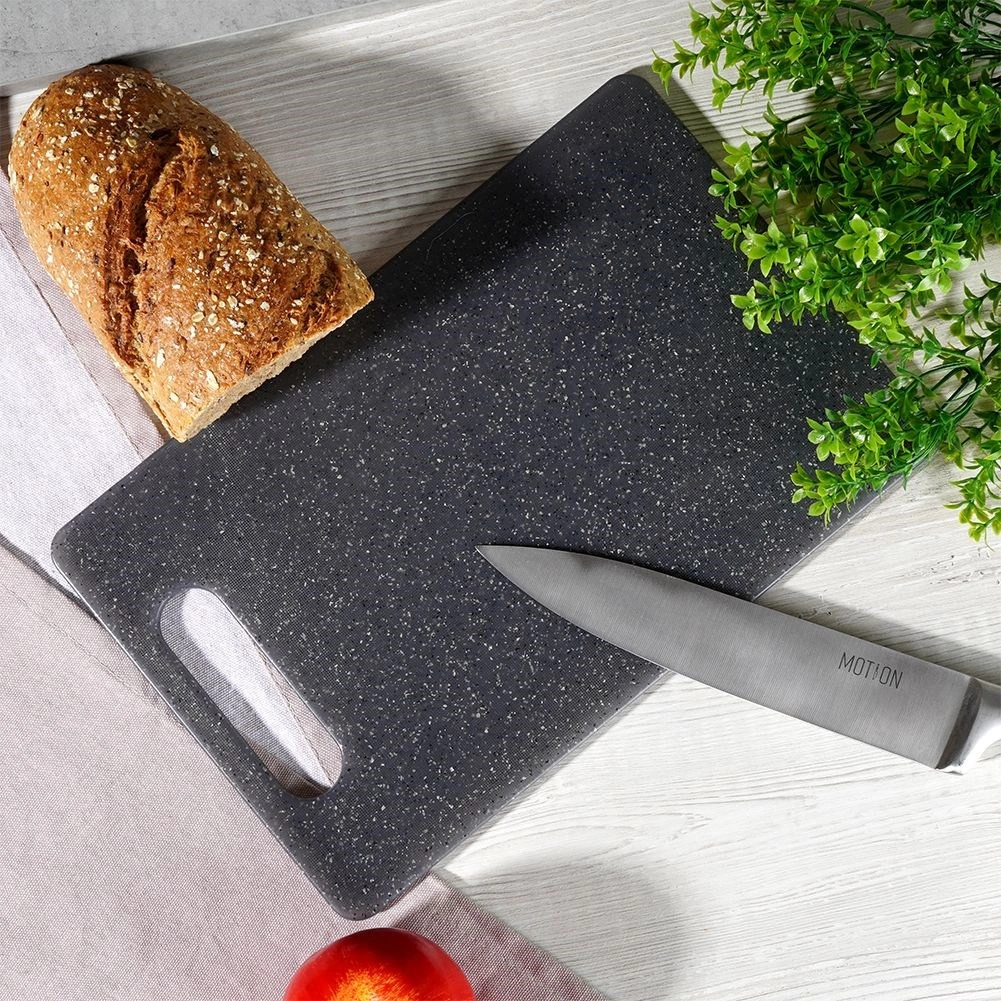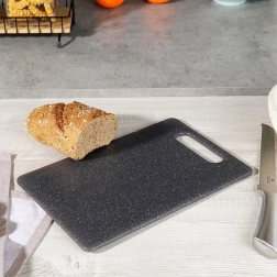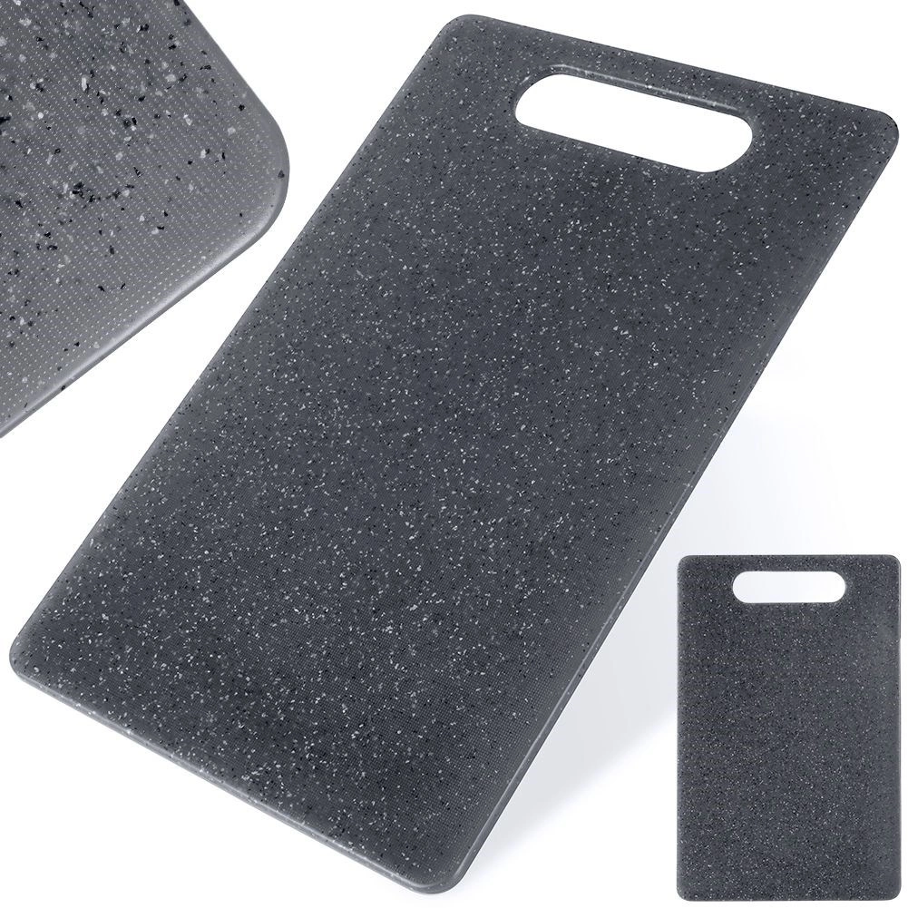 Universelt plastskærebræt til madvarer i størrelsen 31 × 20 cm er en pålidelig hjælper i ethvert køkken. Det robuste materiale i grå med “granit”-effekt er skånsomt mod knive, egnet også til keramiske klinger, og modstår samtidig almindeligt slid.