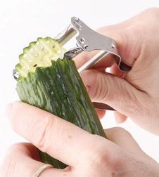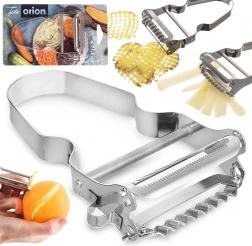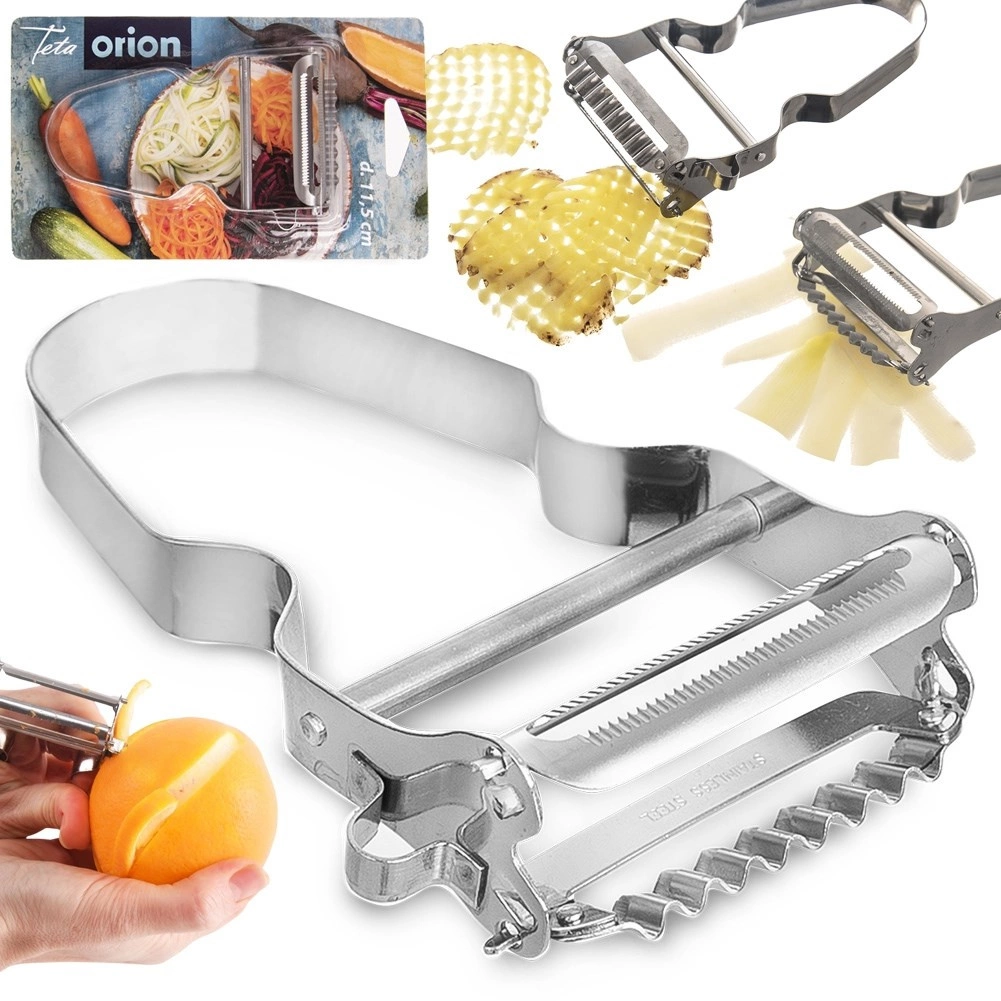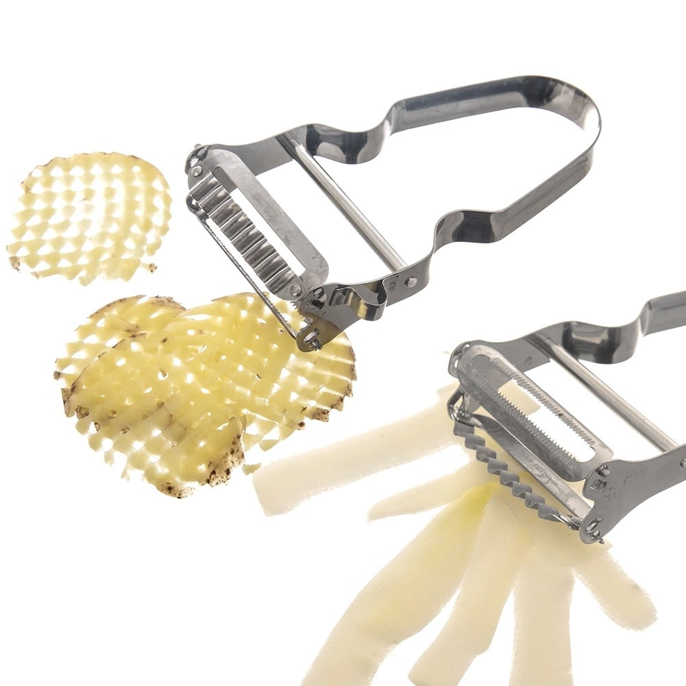 Det ene blad til hurtig skrælning, det andet til bølgede skiver og fine strimler – ideelt til sprøde chips eller effektfuld pynt af kartofler og grøntsager.