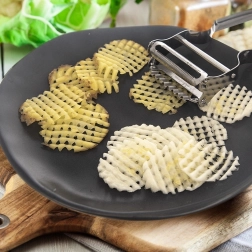 Lav ensartede skiver og gitterformede “vaffel”-snit for attraktiv servering og ekstra sprødhed ved bagning.