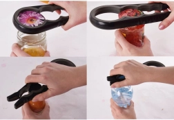 Åbn et låg nemt: vælg den passende åbning, sæt åbneren på låget, klem godt sammen og drej jævnt. Dette praktiske køkkenredskab sparer tid, kræfter og håndled.
