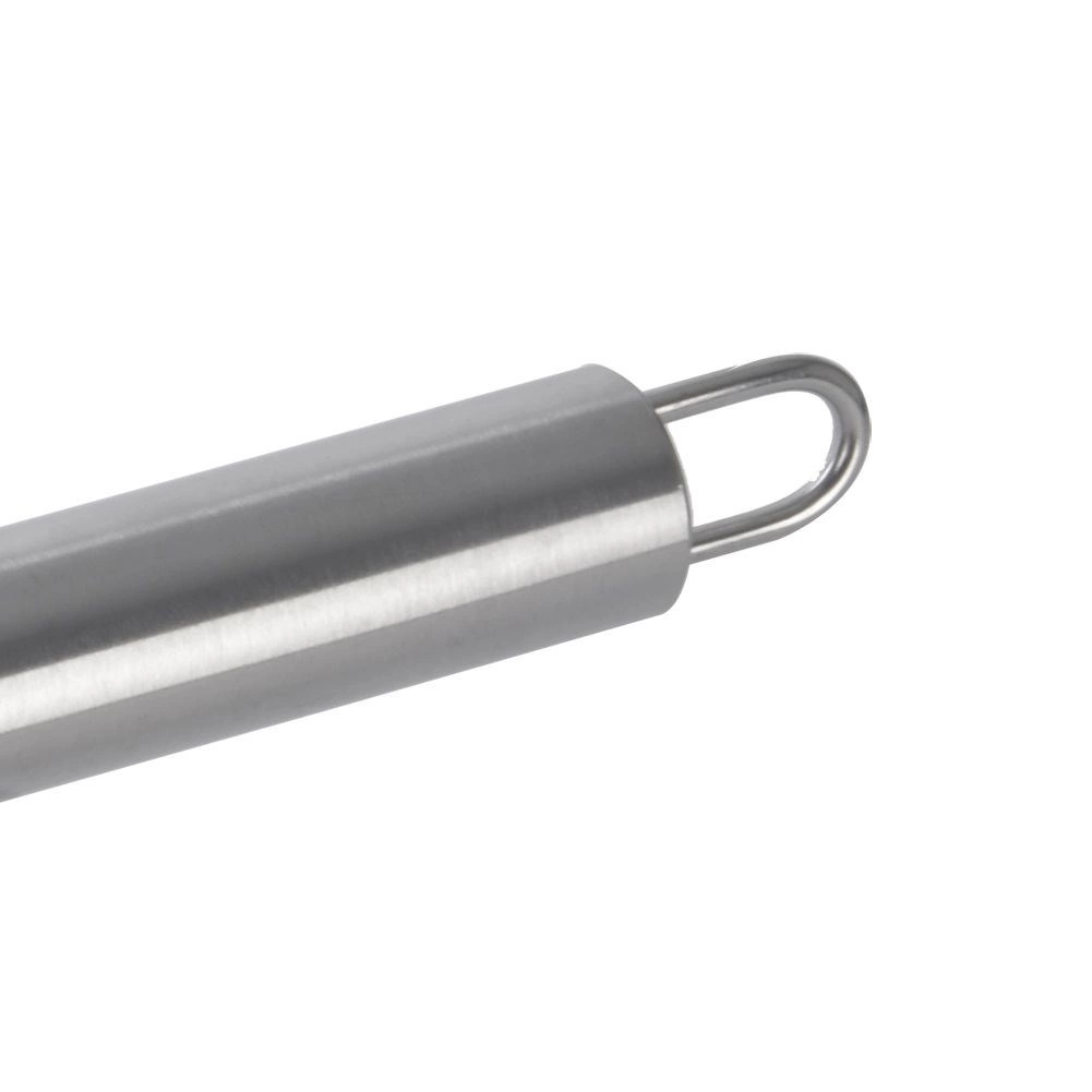 Den robuste udførelse i rustfrit stål sikrer lang levetid og nem vedligeholdelse, inklusive mulighed for opvask i opvaskemaskine. Det lange ergonomiske håndtag ligger godt i hånden, og ophængsøjet muliggør pladsbesparende opbevaring på skinne eller krog.