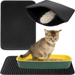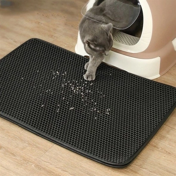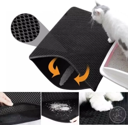Underlag til kattetoilet er et nødvendigt hjælpemiddel for enhver katteejer. Det specielle design hjælper med at holde området omkring kattetoilettet fri for spredt grus, der opsamles fra poterne, når katten forlader toilettet.