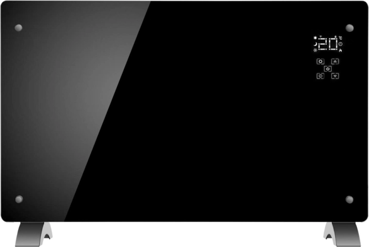 Radiatoren kan placeres frit på gulvet eller monteres fast på væggen. Den præcise termostat, trinvise varmeregulering, 24‑timers timer og ugentlig programmering hjælper med at reducere forbruget og holde en stabil temperatur. Den glase front er let at rengøre og giver interiøret et moderne udtryk.
