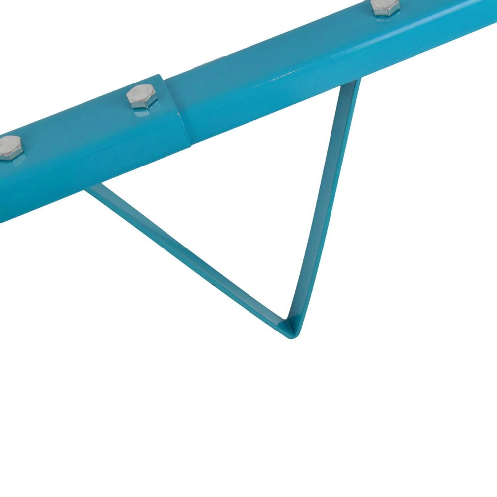 Robust stålramme med afstivninger og mulighed for længdejustering giver stabilitet og nem tilpasning til traileren.