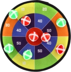 Spillet indeholder 8 bolde med velcro, som sikkert hæfter til målskiven, hvilket minimerer behovet for opsyn med sikkerheden. Målskiven er udstyret med et øje til nem ophængning i rummet.