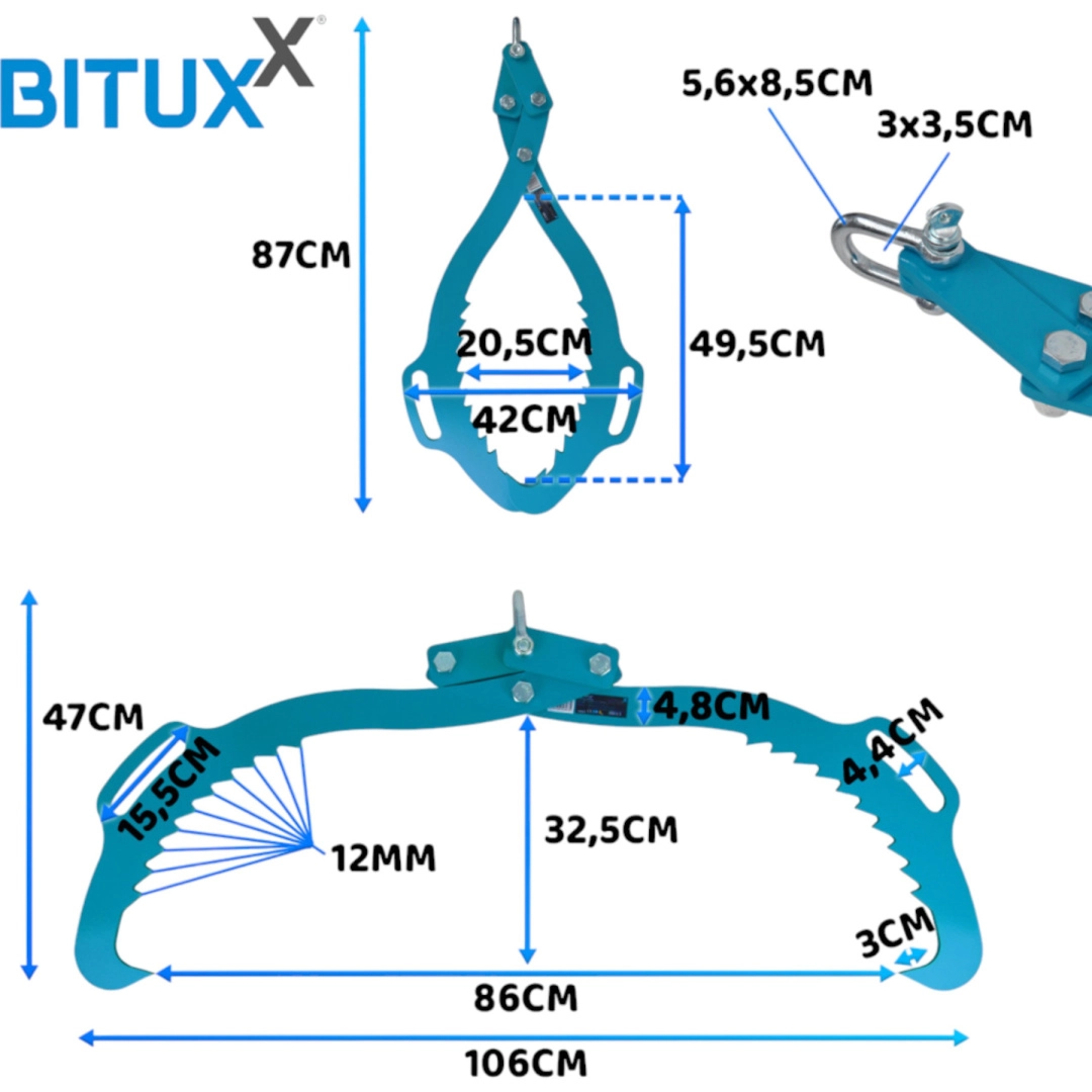 Leder du efter et pålideligt værktøj til håndtering af tunge stammer? BITUXX-kloen kombinerer høj bæreevne, stor åbningsvidde og sikkert tandgreb, så du kan løfte, flytte og afsætte træ hurtigt og sikkert. Ideel til lastning, losning og træktræk af stammer under krævende forhold.
