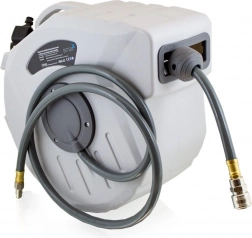 Den automatiske slangetromle til trykluft giver orden, sikkerhed og et jævnt arbejdflow i værksted og garage. Det robuste plastkabinet beskytter mekanismen, den elastiske PVC-slange bevarer sin fleksibilitet selv ved lavere temperaturer, og automatisk oprulning holder altid slangen pænt samlet.