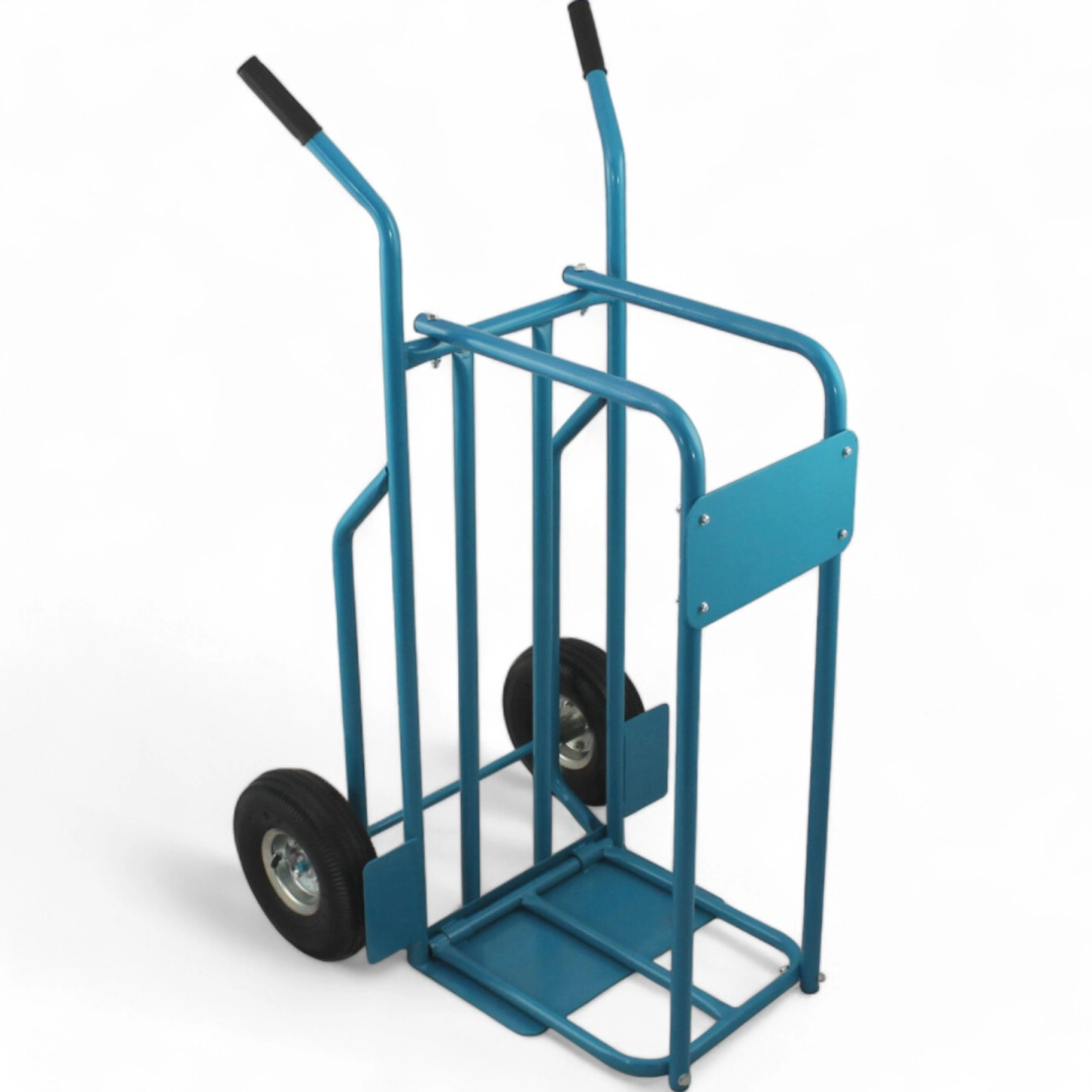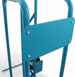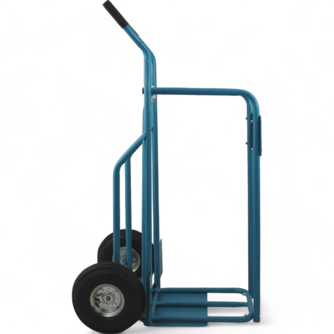 Robust stålkonstruktion med forstærkninger og ergonomiske håndtag giver sikker manøvrering og lang levetid ved daglig brug.