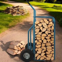 Én vogn til flere opgaver: dyb kurv til brænde og praktisk skuffe til kasser eller sække. Transporterer let forskellige typer last i løbet af dagen.