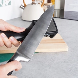 Sliberen er let, holdbar og nem at bruge og opbevare – den passer i enhver køkkenskuffe. Den egner sig til almindelige, glatte køkkenknive, f.eks. kokkeknive, universalknive og udskæringsknive af rustfrit eller belagt stål.