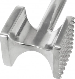 Takket være det ergonomiske, skridsikre håndtag er den behagelig og sikker at bruge. Et praktisk ophængsøje muliggør ophæng på skinne eller nem opbevaring i skuffe. Værktøjet er robust og holdbart, velegnet ikke kun til svinekød, oksekød, fjerkræ eller fisk, men også til knusning af nødder og krydderier. For lang levetid anbefales håndvask.