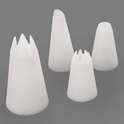 Fire genanvendelige plastspidser gør det muligt at skabe forskellige former og teksturer i cremen – fra fine stjerner til markante kanter.