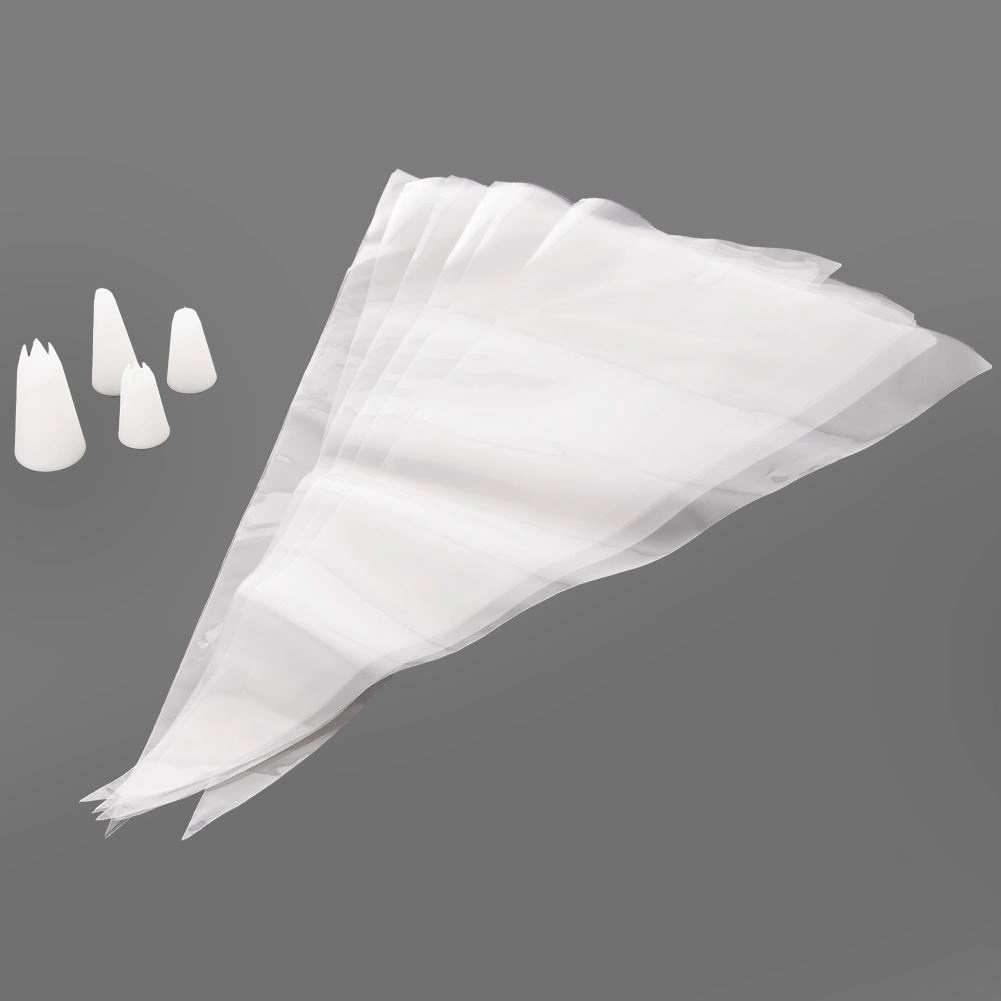 Med dette komplette sæt klarer du elegant dekoration med creme, flødeskum og glasur samt præcis fyldning. Poserne på 35 cm ligger godt i hånden, og takket være de udskiftelige mundstykker kan du lave forskellige dekorationsmønstre fra fine stjerner til markante linjer. De holdbare plastkomponenter er velegnede til gentagen brug og er lette at vedligeholde.