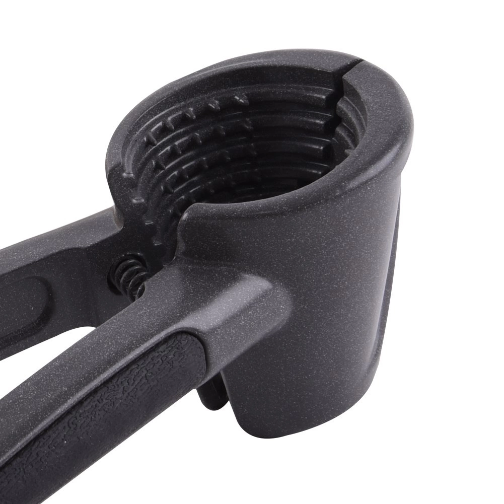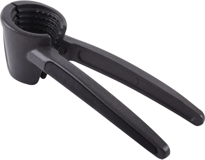 Praktisk og holdbar nøddeknækker af robust aluminiumslegering med skridsikkert håndtag og fjeder for komfortabel brug. Takket være det riflede hoved åbner den sikkert hårde skaller med en diameter på ca. 1,5–4,5 cm og klarer selv de hårdeste nødder. Alsidig anvendelse til valnødder, hasselnødder, mandler, pecan og peanuts, og kan desuden bruges til at åbne flasker med mousserende vin.