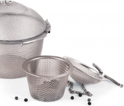 Den fulde konstruktion i rustfrit stål sikrer holdbarhed, hygiejne og nem rengøring. Kæden med krog gør håndteringen og ophængningen let, og derfor er den ideel til både supper, fond og saucer samt til større kander med te eller urtete.