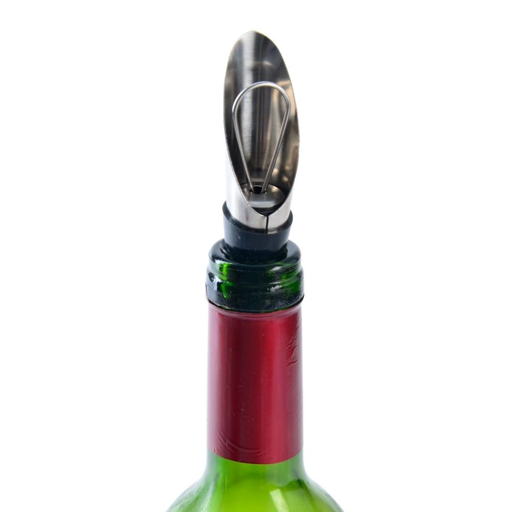 Den tilspidsede hældetud i rustfrit stål med tætsluttende ring forhindrer dryp og holder flaskehals og dug ren ved hver servering.