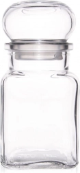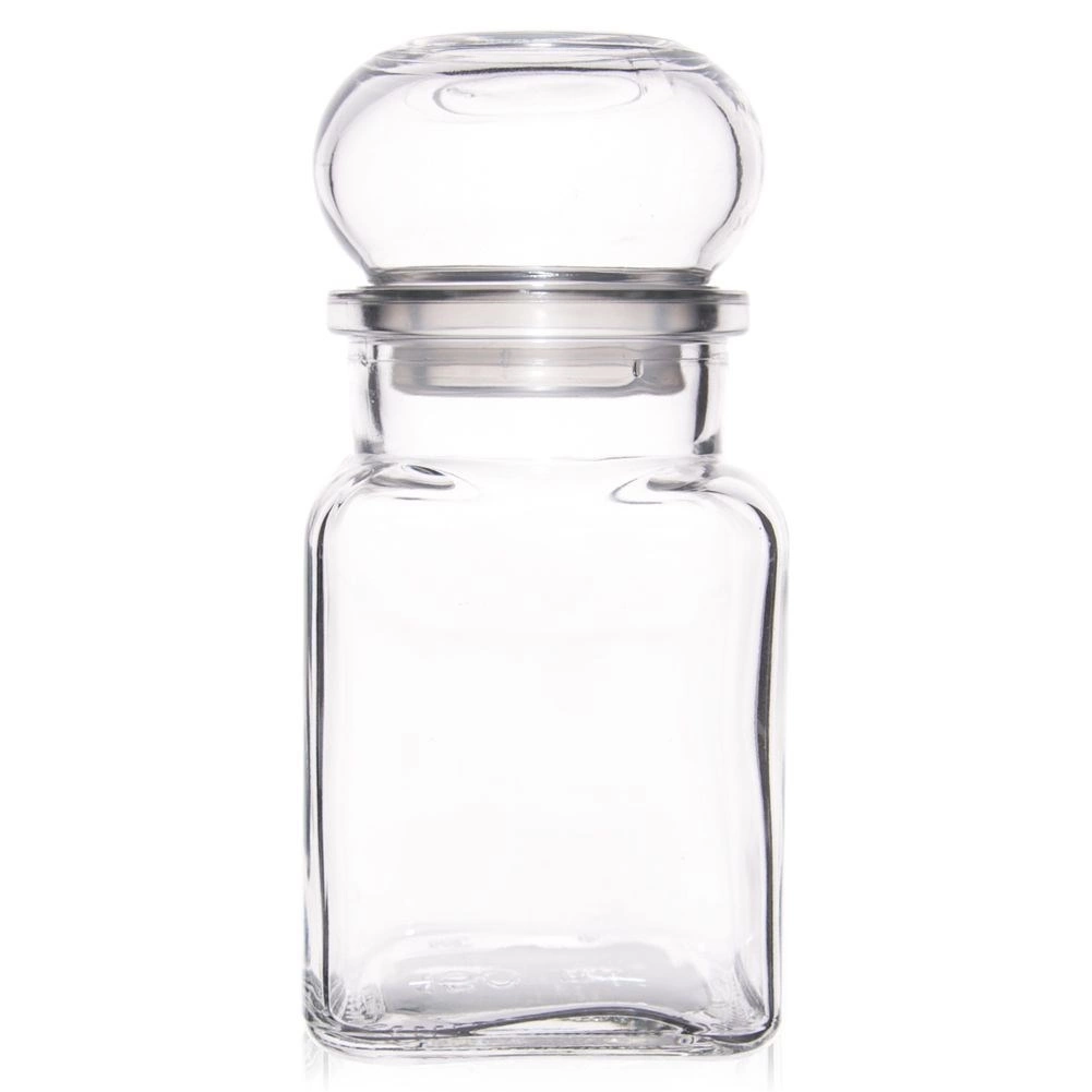 Praktisk glaskrydderiglas med volumen 150 ml, tætsluttende låg og silikone-ring holder dine krydderier og urter længere friske. Takket være det gennemsigtige glas har du altid overblik over indholdet, og den firkantede form samt de kompakte mål 5,5 × 5,5 × 12 cm sparer plads og sikrer nem opbevaring og let dosering.