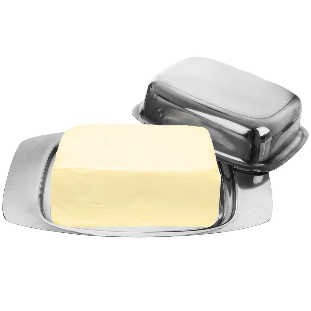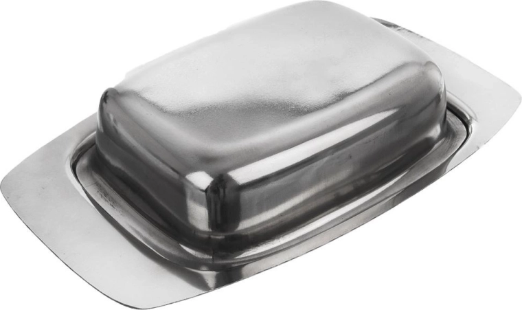 Denne praktiske smørboks i rustfrit stål er ideel til daglig opbevaring og servering af smør. Det minimalistiske design passer perfekt i ethvert køkken og på et festligt dækket bord. Den robuste udførelse sikrer lang levetid og nem vedligeholdelse.