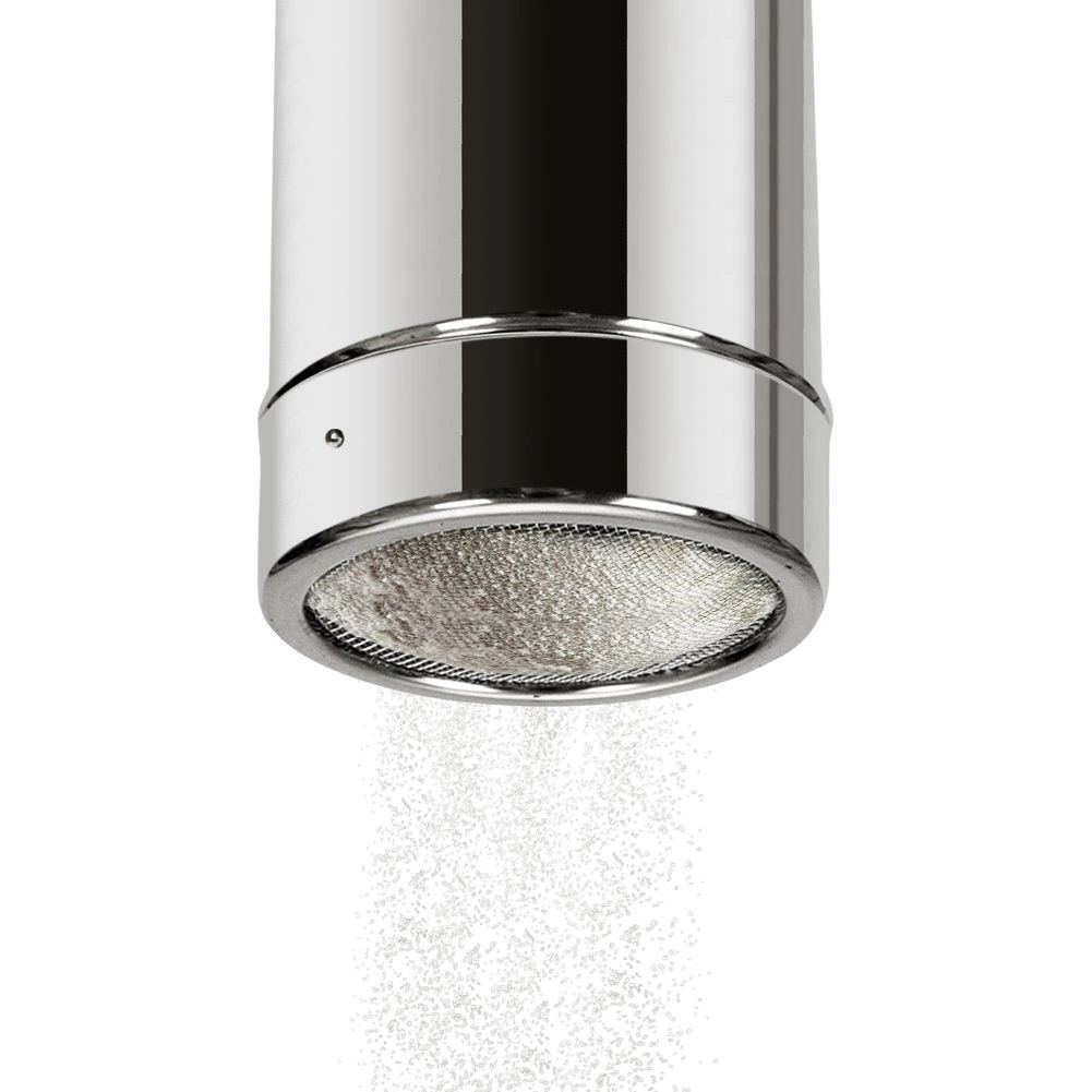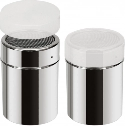 Denne beholder med et volumen på 300 ml og en diameter på 7 cm er fremstillet af kvalitets rustfrit stål og har et gennemsigtigt plastlåg. Det tætte si-net sikrer præcis dosering af fine, tørre ingredienser uden klumpdannelse og spild. En fremragende hjælper til pyntning af desserter, cappuccino eller varm chokolade.