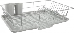 Elegant og praktisk opvaskestativ i størrelsen 46,5 × 31 × 13 cm gør det nemt at tørre tallerkener, skåle, glas og bestik uden at vand samler sig på køkkenbordet. Den metalramme i rustfrit stål med gråhvid beskyttende overflade er stabil, korrosionsbestandig og let at rengøre.
