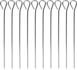 Praktisk sæt med 10 rustfrie spid på 10 cm med et behageligt øje til greb. Ideelle til ruller, roulader, zrazy samt som stilfulde tandstikker til canapéer, mini-spid eller frugtsnacks. Holdbart rustfrit stål sikrer lang levetid og nem rengøring.