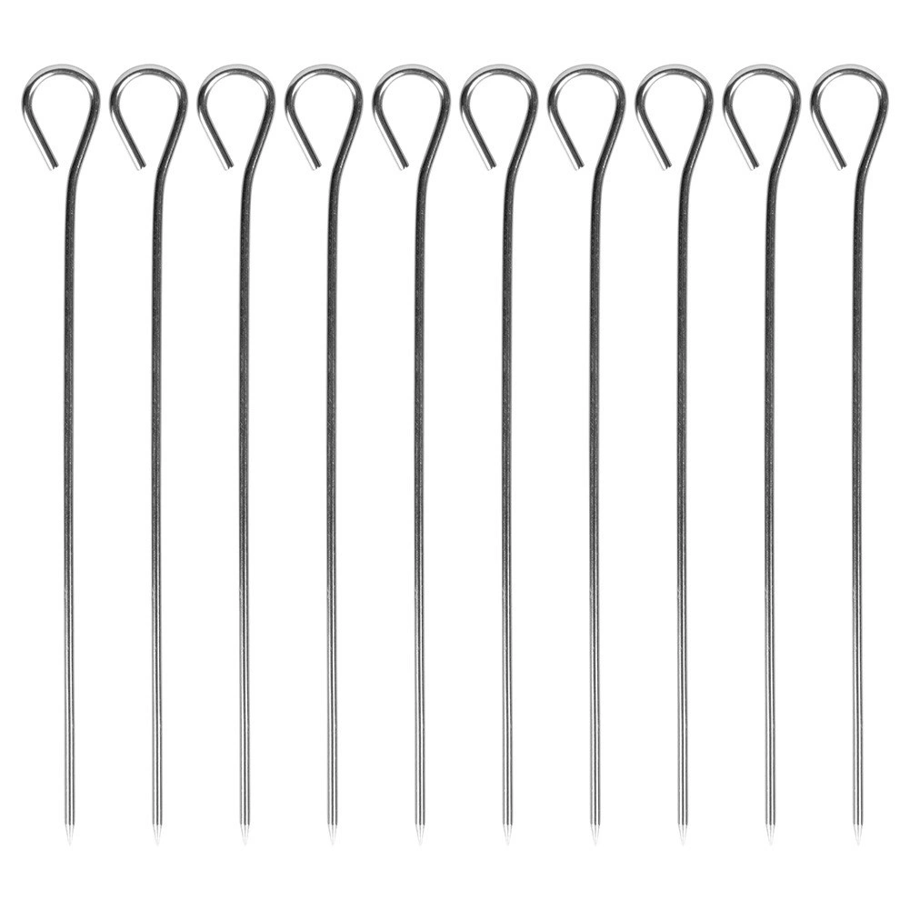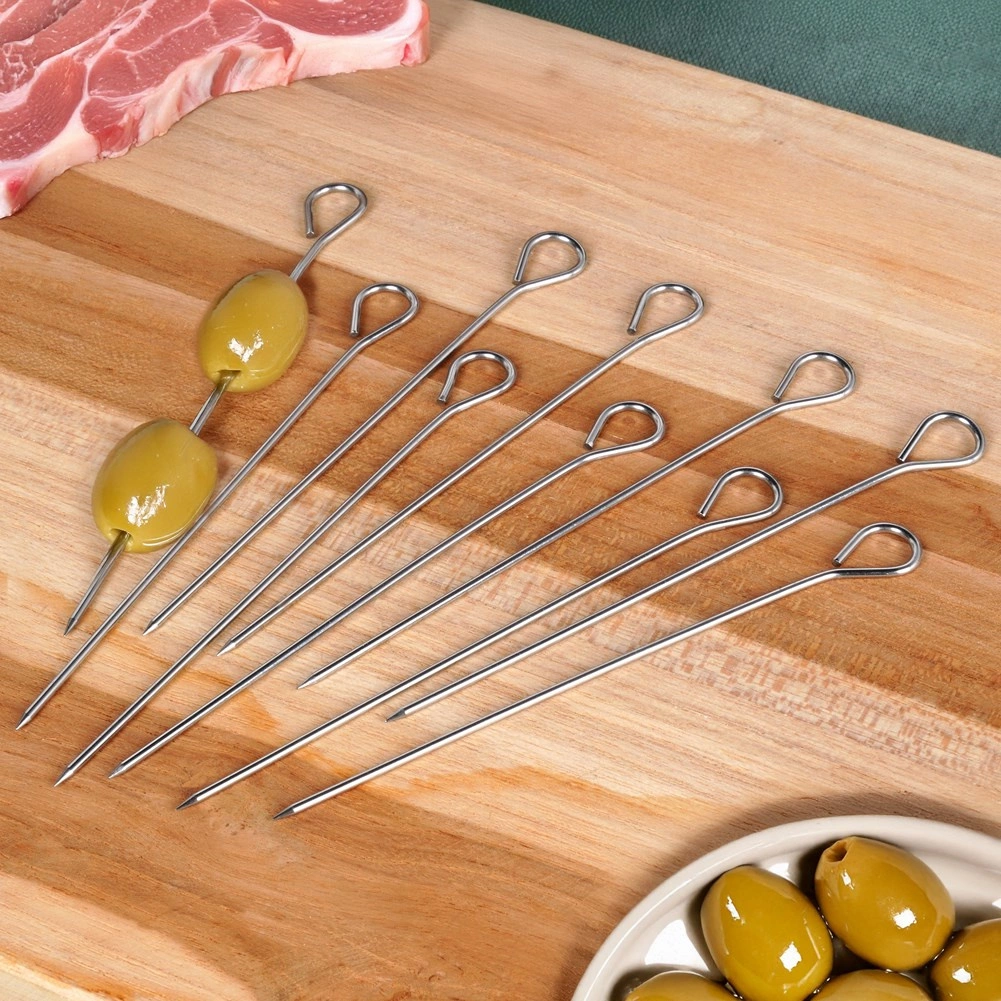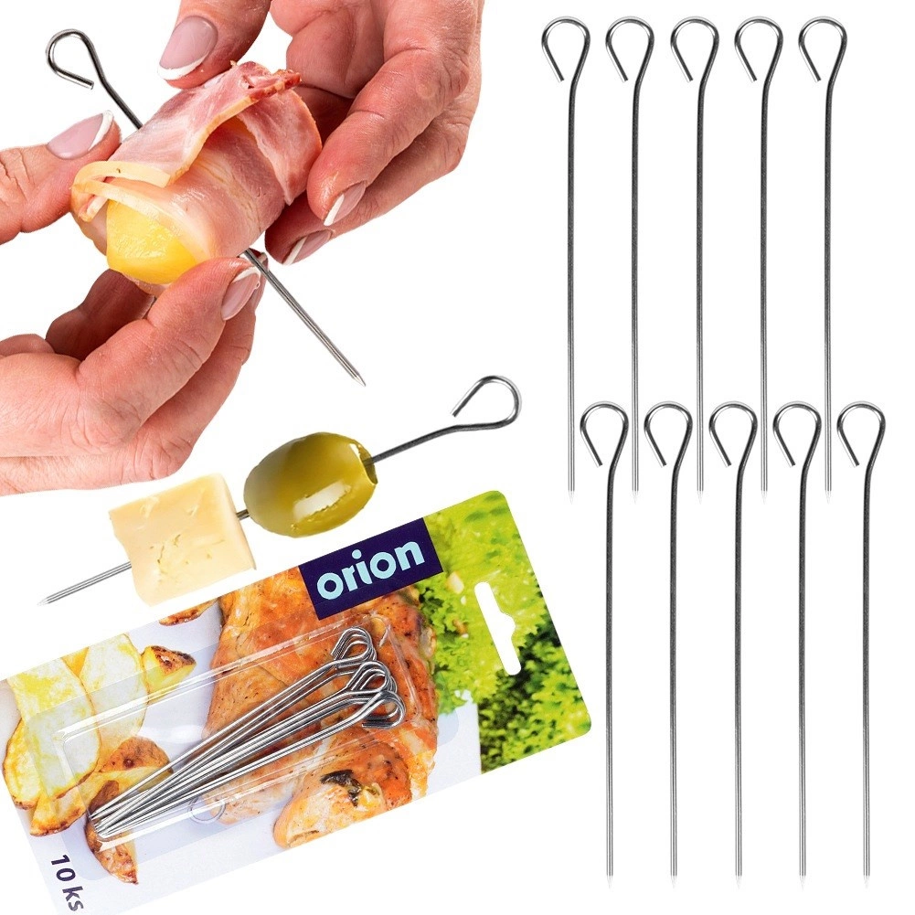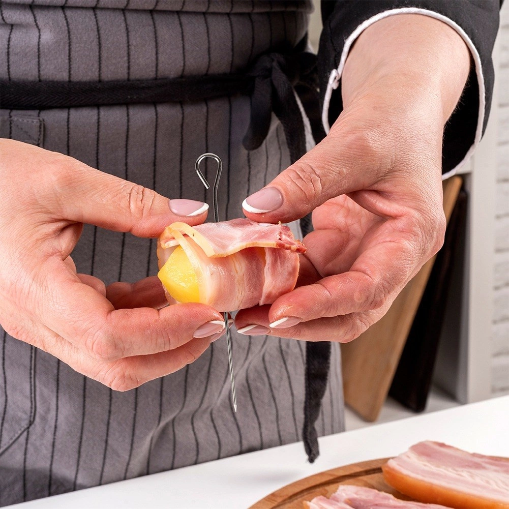 Med disse alsidige rustfri spid kan du tilberede ruller og roulader uden tråd og erstatte engangs-tandstikker af træ. Øjet i enden gør det nemt at stikke i, tage ud og håndtere, samtidig med at det forhindrer, at maden glider.