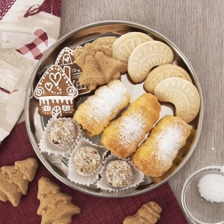 Denne runde bakke i rustfrit stål med poleret overflade giver et tidløst udtryk og praktisk anvendelse til både hverdag og festlige lejligheder. Takket være den forhøjede kant er serveringen sikker og stabil, og den glatte overflade er nem at rengøre.