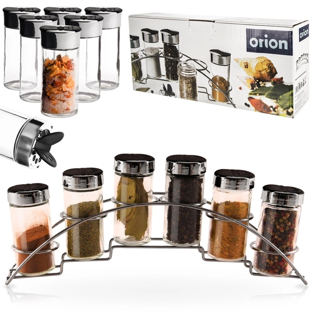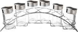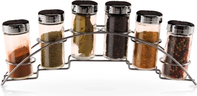 Det buede metalstativ rummer alle glasene overskueligt og stabilt, så ofte brugte krydderier altid er nemt tilgængelige på køkkenbordet.
