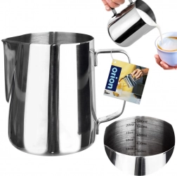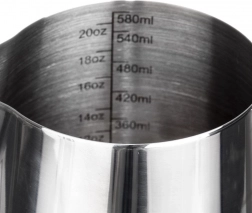 En stilfuld og funktionel hjælper til både baristaer og kaffeglade. Kanden er lavet af kvalitets rustfrit stål, som er let at rengøre, korrosionsbestandigt og har god varmeledning. Indvendige mærker for hver 60 ml muliggør præcis dosering af mælk eller fløde til perfekt cappuccino eller latte.