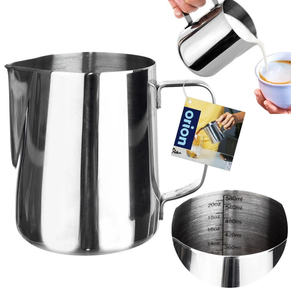Praktisk rustfri mælkekande på 580 ml med indvendig måleskala til præcis dosering – ideel til kaffebrygning og latte art. Tilbyder holdbar konstruktion i rustfrit stål, behagelig hældning takket være den præcise tud og sikkert greb. Velegnet til opvarmning på gas-, el- og glaskeramiske kogeplader (ikke egnet til induktion).