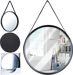 Det runde spejl i industriel stil imponerer med sit minimalistiske design og det praktiske ophæng. Den sorte ramme af kvalitetsmateriale og det solide bånd giver spejlet et moderne udtryk, der passer til lejligheder, kontorer, skønhedssaloner og restauranter. Takket være lysets refleksion forstørrer og oplyser det visuelt rummet.