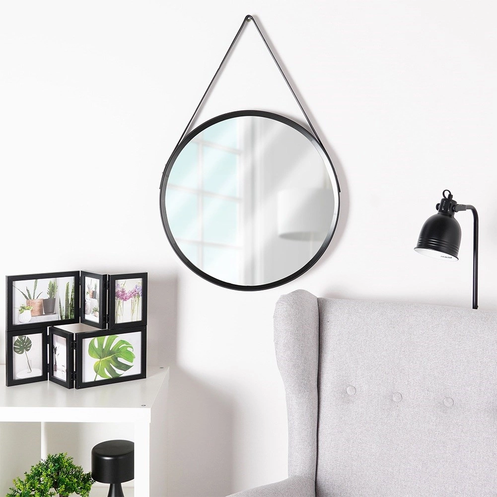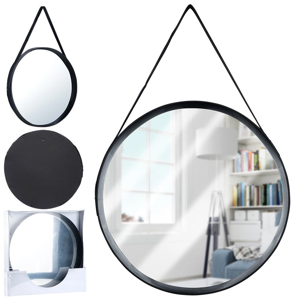 Det robuste bånd i læderlook muliggør sikker og hurtig ophængning af spejlet på væggen uden kompliceret montering.