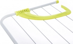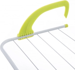 Konstruktionen af lakeret metal i hvid og holdbare plastdele i grøn giver stabilitet, bæreevne og lang levetid. De klapbare arme gør det muligt hurtigt at folde sammen og opbevare i skab eller skuffe, når du ikke lige har brug for stativet. Installationen er intuitiv og kræver intet værktøj.