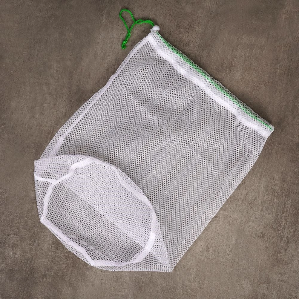 Praktisk vaskepose i størrelsen 25 × 44 cm, der beskytter fint tøj og undertøj mod skader og fnugdannelse. Takket være det åndbare net sikres fri gennemstrømning af vand og vaskemiddel og forhindres sammenfiltring med andet vasketøj. Lukning med plastik snorlås er skånsom og sikker for både vaskemaskine og tøj. Genanvendelig og holdbar – ideel til daglig vask.